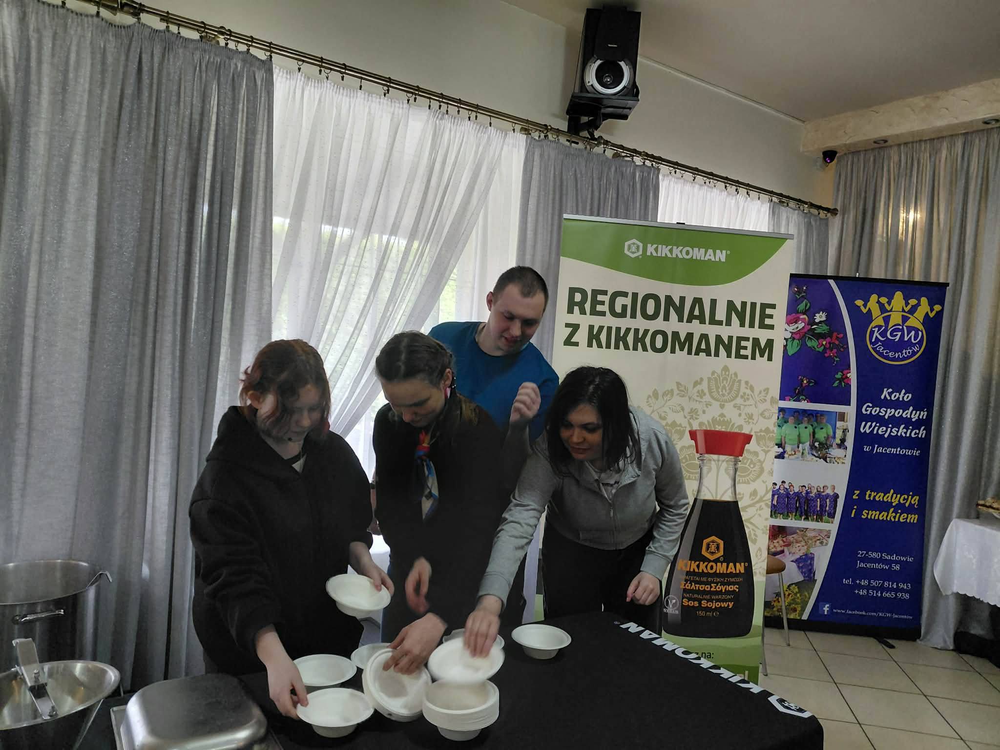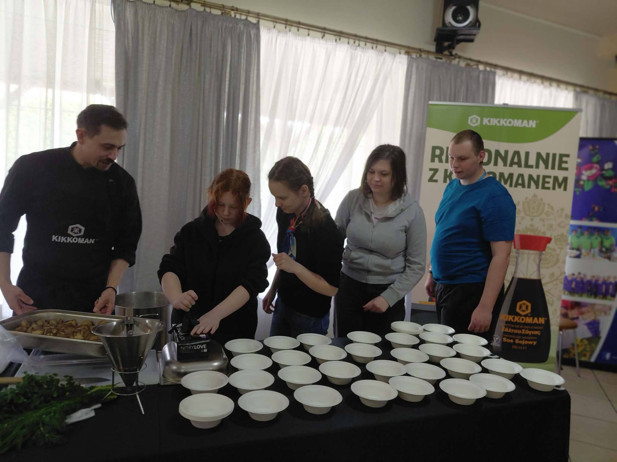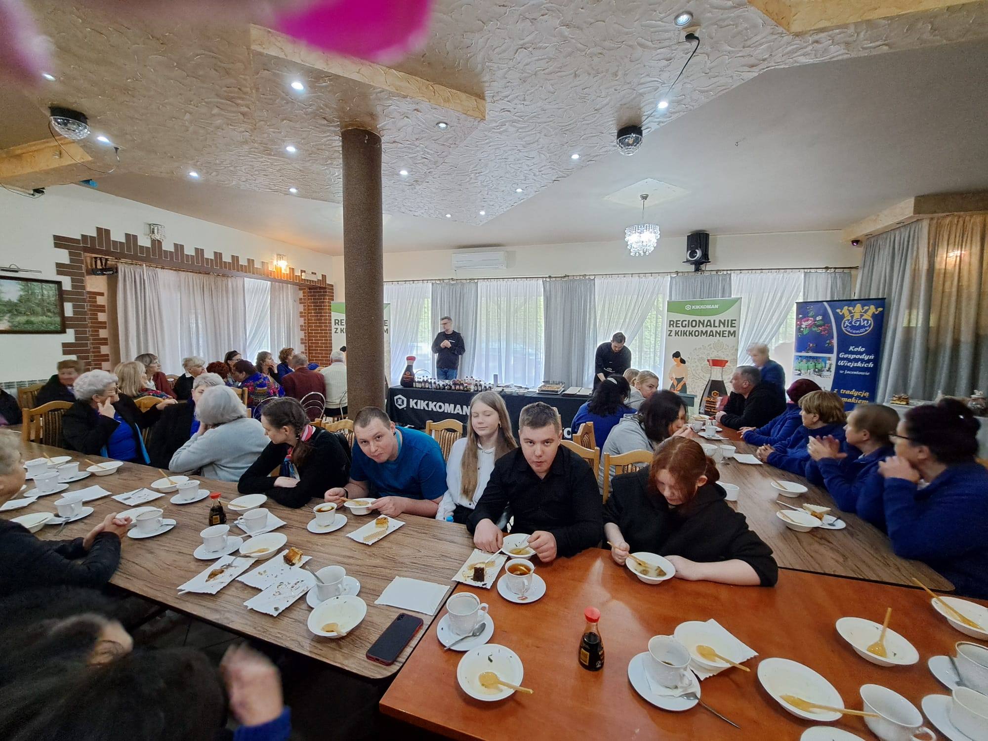 Wyjątkowe warsztaty kulinarne naszych uczniów! Z ogromną radością dzielimy się wspomnieniami z niezwykłego dnia, podczas którego uczniowie naszego Ośrodka wzięli udział w warsztatach kulinarnych zorganizowanych przez Koło Gospodyń Wiejskich w Jacentowie Pod czujnym okiem utalentowanych kucharzy uczestnicy mieli okazję poznać regionalne potrawy w zupełnie nowej odsłonie – wzbogacone nutą orientalnych smaków dzięki znanym sosom sojowym To było wyjątkowe połączenie tradycji z nowoczesnością oraz kuchni polskiej z inspiracjami azjatyckimi Nasi uczniowie nie tylko obserwowali, ale również aktywnie uczestniczyli w przygotowywaniu potraw! Z ogromnym zaangażowaniem i ciekawością odkrywali nowe smaki – zarówno te znane, jak i te zupełnie inne, bardziej egzotyczne Atmosfera była pełna radości, uśmiechu i pozytywnej energii. Uczniowie chętnie brali udział w zajęciach i z dumą próbowali własnoręcznie przygotowanych dań. Dla wielu z nich było to nowe, inspirujące doświadczenie, które na długo pozostanie w pamięci Dziękujemy organizatorom za ciepłe przyjęcie, wspaniałą atmosferę i możliwość przeżycia tej kulinarnej przygody!
