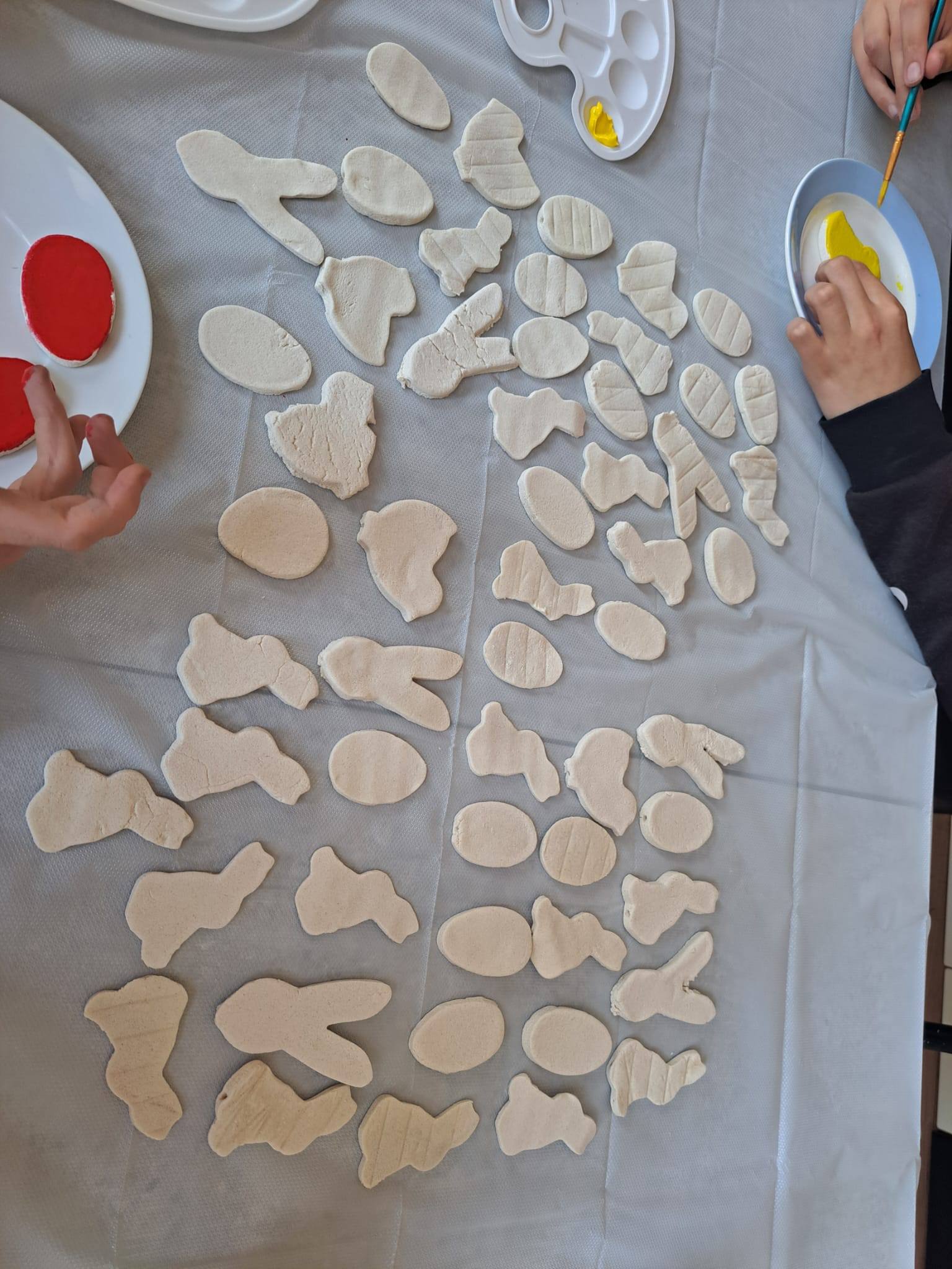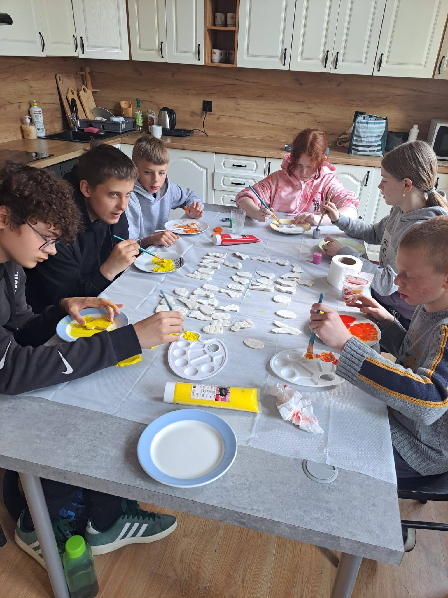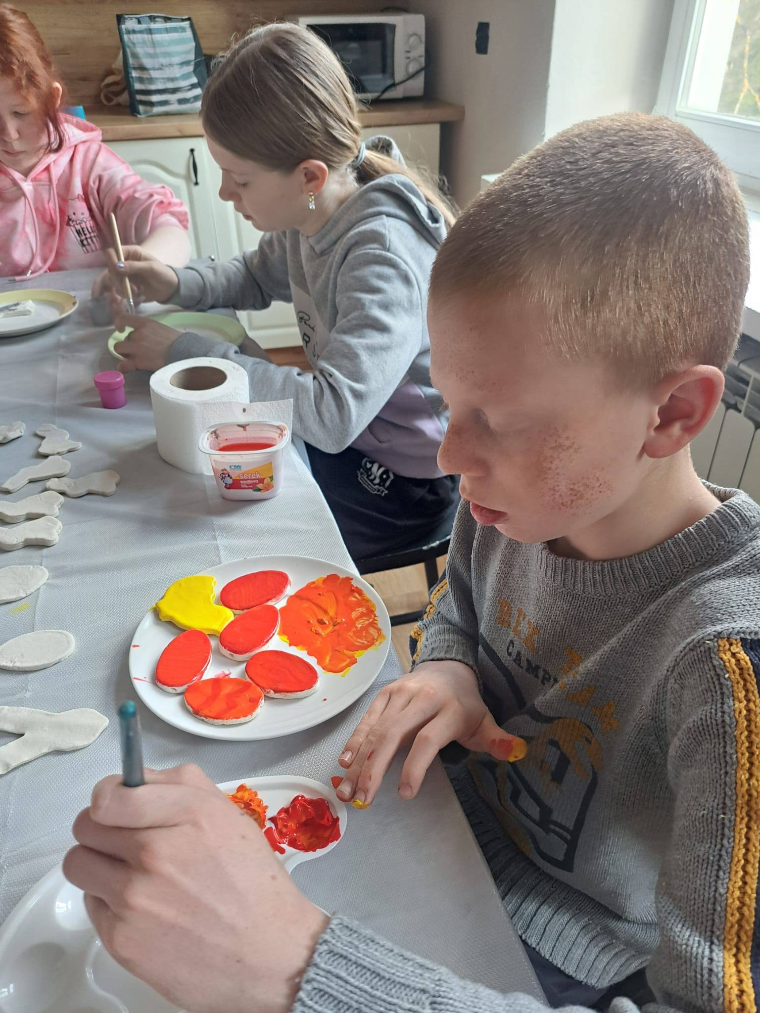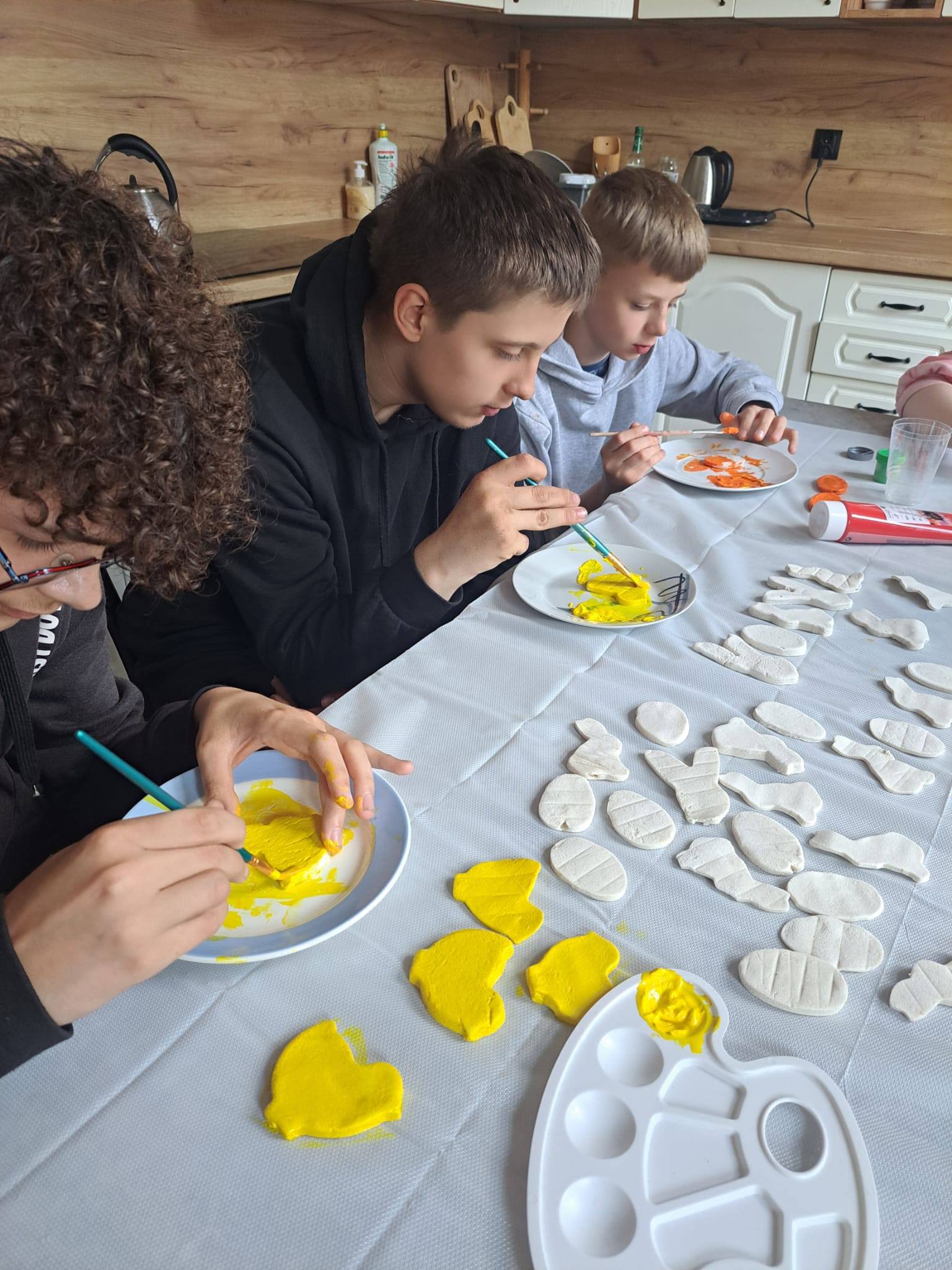 W naszej szkole zrobiło się naprawdę wiosennie i świątecznie! Podczas zajęć plastycznych uczniowie Szkoły Podstawowej tworzyli wielkanocne figurki z masy solnej – pojawiły się urocze zajączki , kurczaczki i kolorowe jajeczka . W tym samym czasie druga grupa działała kulinarnie – z wykorzystaniem tych samych foremek powstały… słodkie odpowiedniki figurek, gotowe do zjedzenia! Na kolejnych zajęciach uczniowie pomalowali swoje prace farbami plakatowymi , dodali detale (oczka dla kurczaczków i króliczków ) oraz umieścili figurki na patyczkach. Powstały piękne dekoracje , które świetnie sprawdzą się jako ozdoby do stroików czy doniczek z wiosennymi kwiatami Zajęciom towarzyszyła radosna atmosfera, a uczniowie byli bardzo dumni ze swoich prac .
